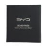 • Category – Premium • Model – BYD • Color – Black • Dimensions – 16cm x 17cm (6.8 x 6.5 Inches) • Pages – 4 • Card Slot – 2 • Design – Logo Engraved and Printed (Silver) • Material – High Quality Rexine • Slots For – License Card, Insurance Card, • Pages For – Revenue License , Emission Test Report