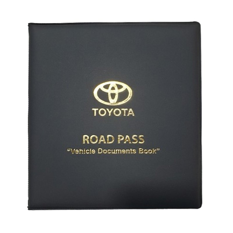 • Category – Premium • Model – Toyota • Color – Black • Dimensions – 16cm x 17cm (6.8 x 6.5 Inches) • Pages – 4 • Card Slot – 2 • Design – Logo Engraved and Printed (Gold) • Material – High Quality Rexine • Slots For – License Card, Insurance Card, • Pages For – Revenue License , Emission Test Report